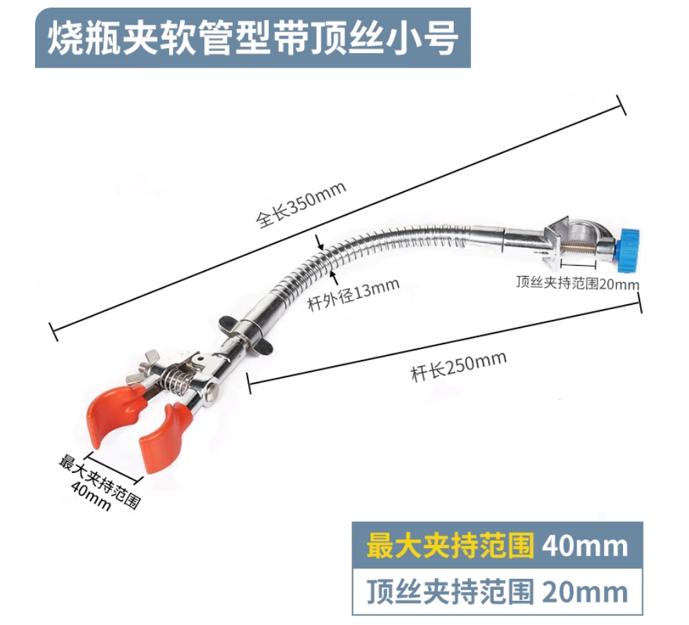 不锈钢烧瓶夹镀锌 十字夹冷凝管夹万能夹烧瓶夹软管型带顶丝小号