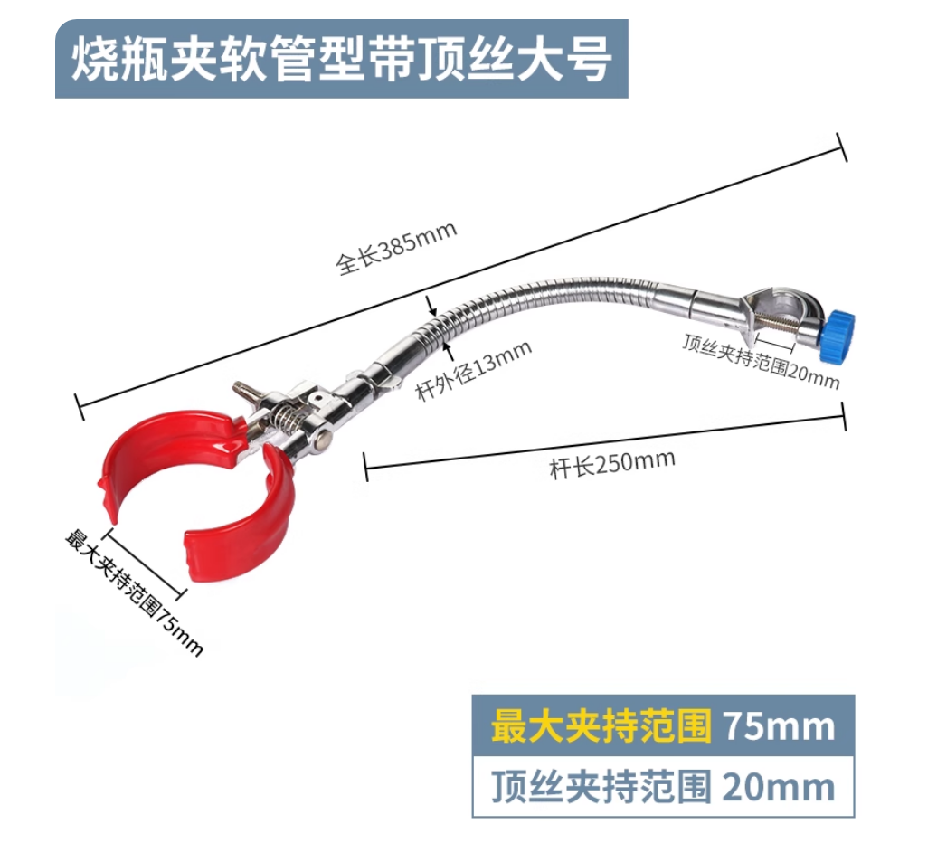 不锈钢烧瓶夹镀锌 十字夹冷凝管夹万能夹烧瓶夹软管型带顶丝大号