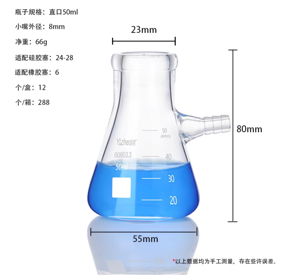 上嘴抽滤瓶抽滤瓶三角瓶抽滤三角瓶直口50ml