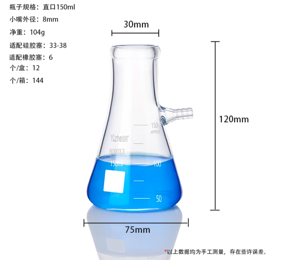 上嘴抽滤瓶抽滤瓶三角瓶抽滤三角瓶直口150ml