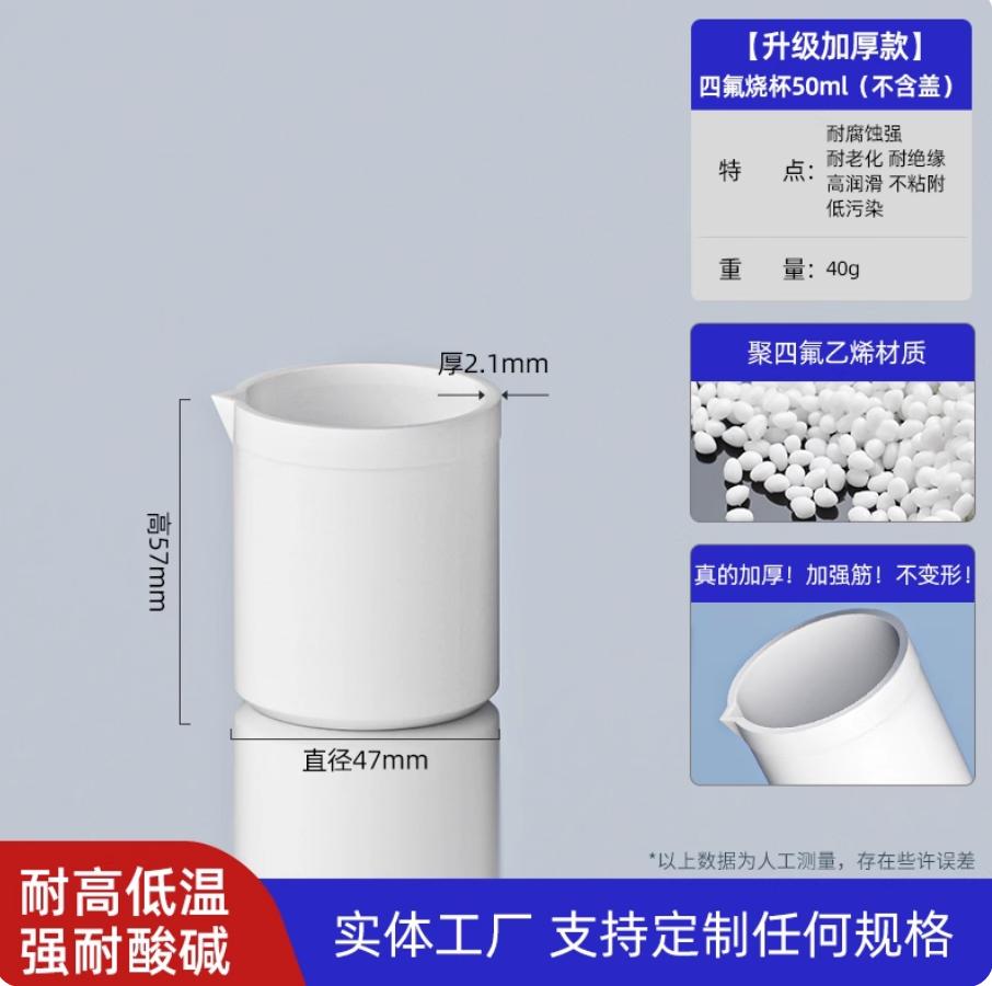 聚四氟乙烯烧杯聚四氟烧杯 耐高温 酸碱 PTFE四氟烧杯F4烧杯 50ml