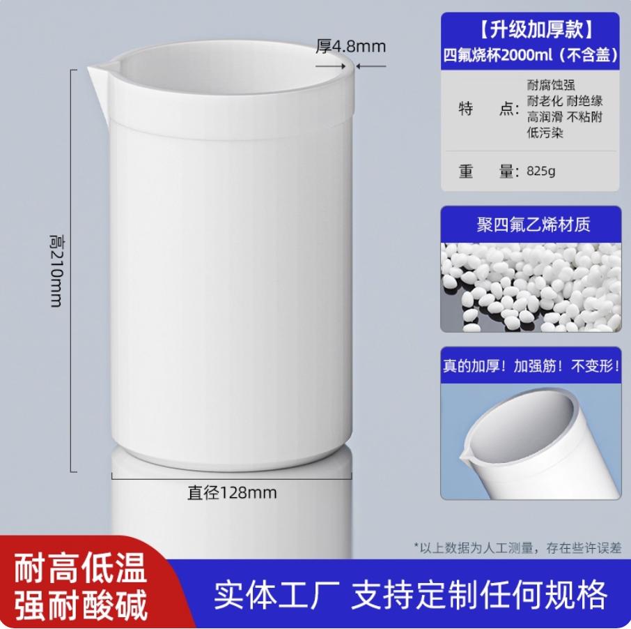 聚四氟乙烯烧杯聚四氟烧杯 耐高温 酸碱 PTFE四氟烧杯F4烧杯 2000ml