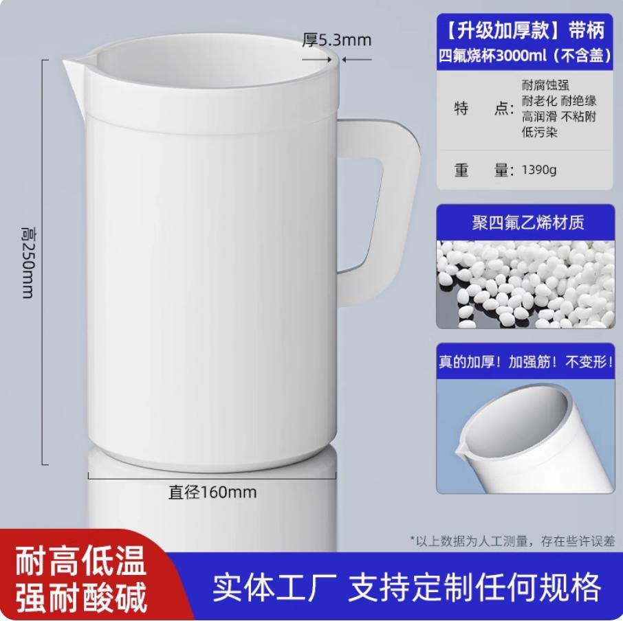 带把烧杯聚四氟乙烯烧杯聚四氟烧杯 耐高温 酸碱 PTFE四氟烧杯F4烧杯 3000ml
