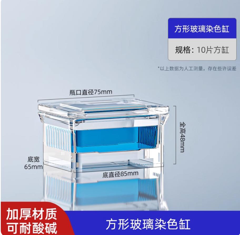 10片方形染色缸玻璃染色缸 装载玻片染色缸10片方缸