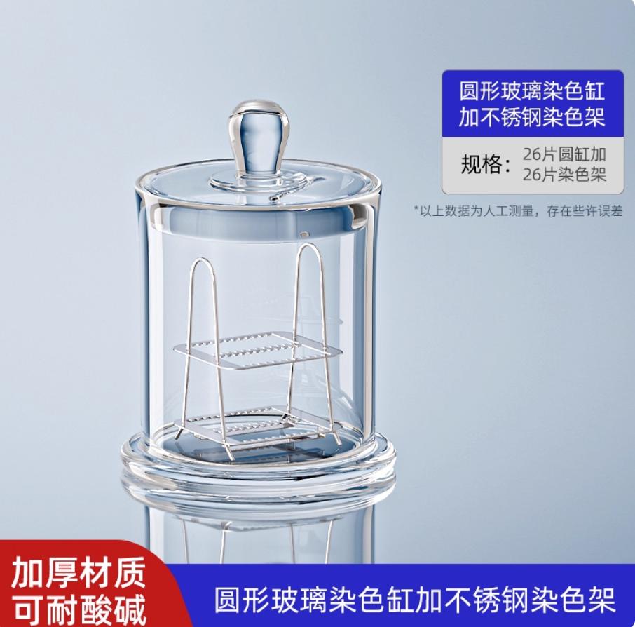 26片圆形染色缸加染色架 玻璃染色缸 装载玻片染色缸26片圆缸100*120mm