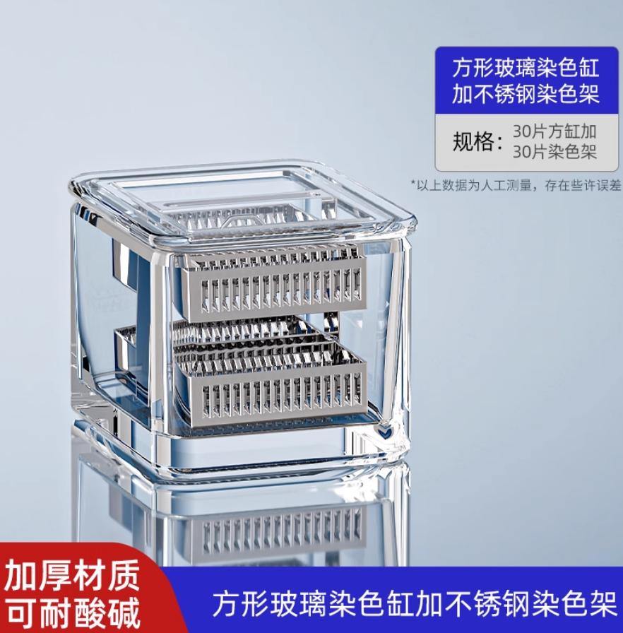 30片方形染色缸加染色架 玻璃染色缸 装载玻片染色缸30片方缸