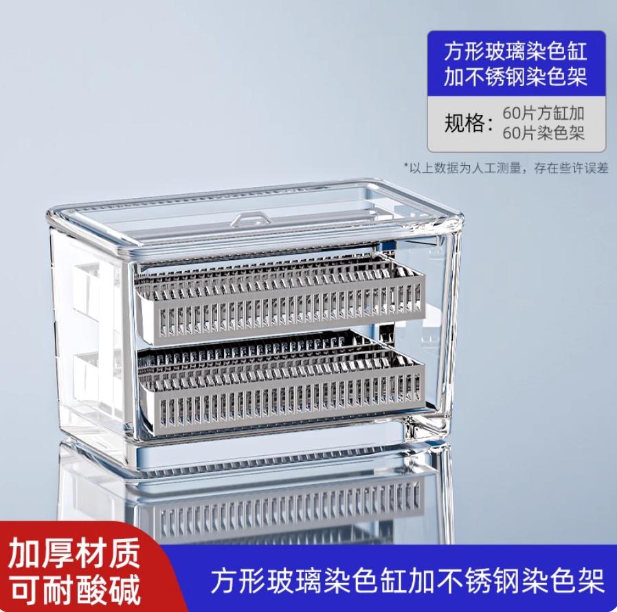 60片方形染色缸加染色架 玻璃染色缸 装载玻片染色缸60片方缸