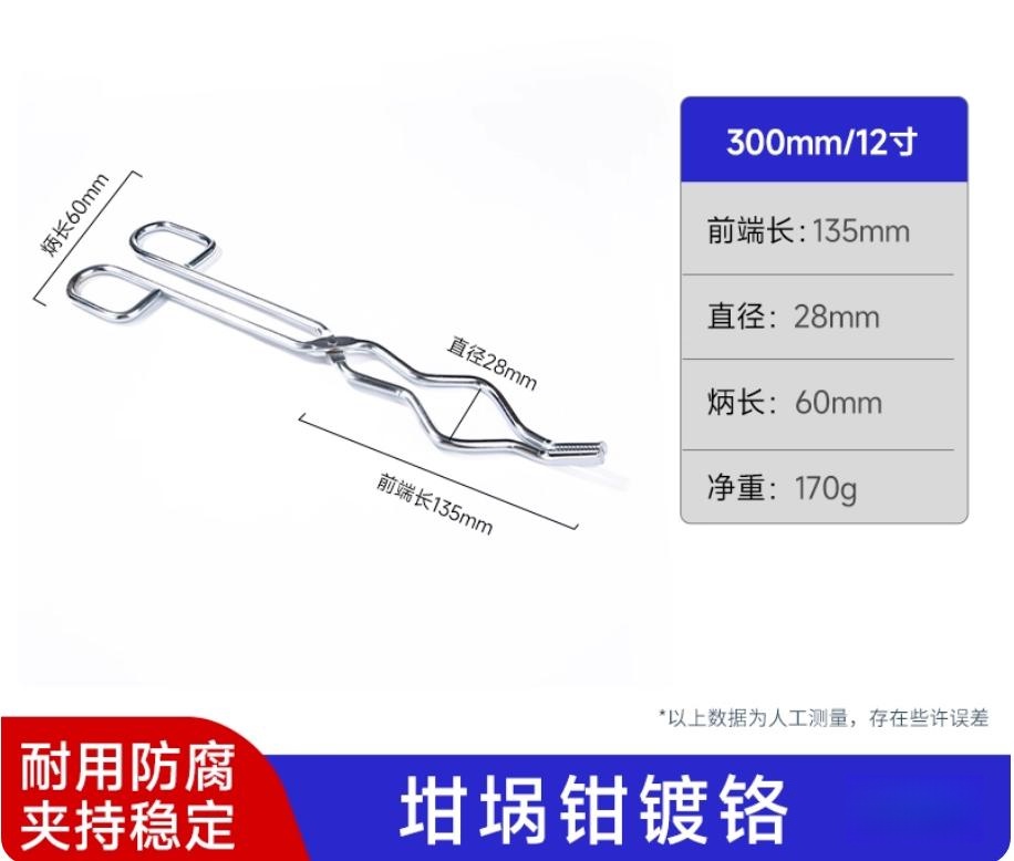 镀铬坩埚钳 马弗炉坩埚钳 圆钢镀铬灰皿钳不锈钢长柄坩埚钳子高硬度陶瓷坩埚夹子12寸300mm