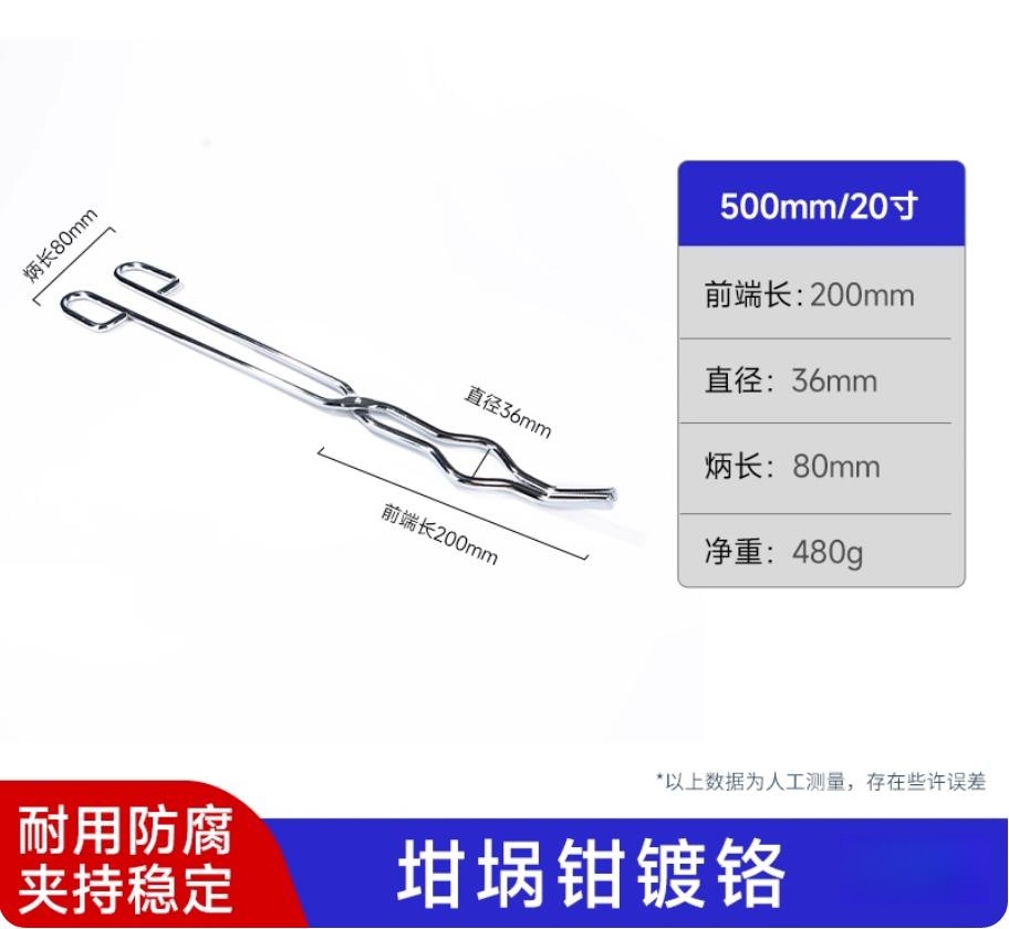 镀铬坩埚钳 马弗炉坩埚钳 圆钢镀铬灰皿钳不锈钢长柄坩埚钳子高硬度陶瓷坩埚夹子20寸500mm