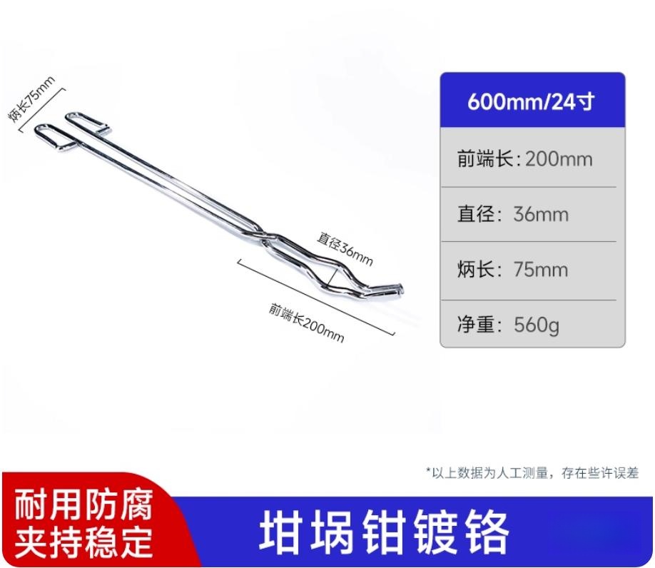 镀铬坩埚钳 马弗炉坩埚钳 圆钢镀铬灰皿钳不锈钢长柄坩埚钳子高硬度陶瓷坩埚夹子24寸600mm