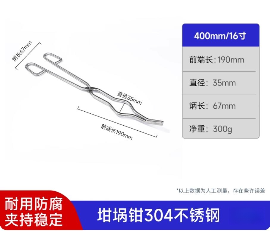 不锈钢坩埚钳 马弗炉坩埚钳 圆钢不锈钢灰皿钳不锈钢长柄坩埚钳子高硬度陶瓷坩埚夹子16寸400mm