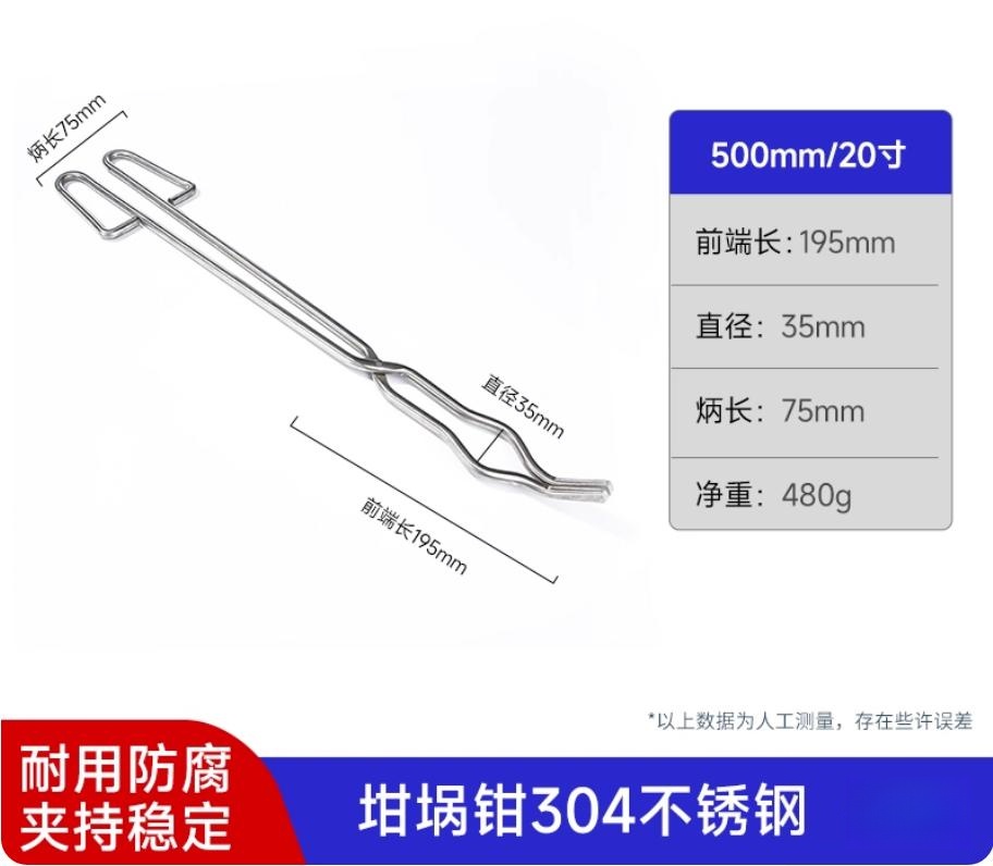 不锈钢坩埚钳 马弗炉坩埚钳 圆钢不锈钢灰皿钳不锈钢长柄坩埚钳子高硬度陶瓷坩埚夹子20寸500mm