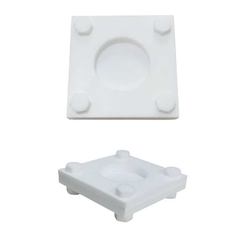 商品简介 上下框聚四氟乙烯材质,中间层为软质聚四氟,螺丝材质也为聚四氟乙烯,外尺寸及孔径可按需求定制