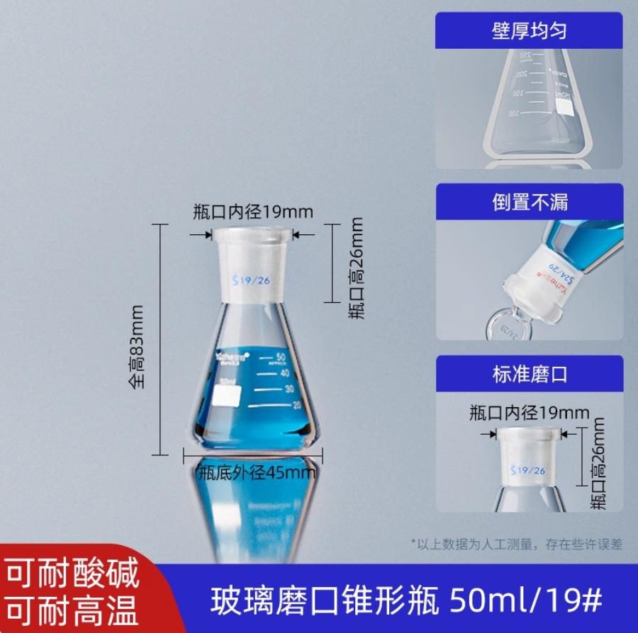 磨口三角瓶标准口磨口三角烧瓶(磨口锥形瓶)50ml*19#