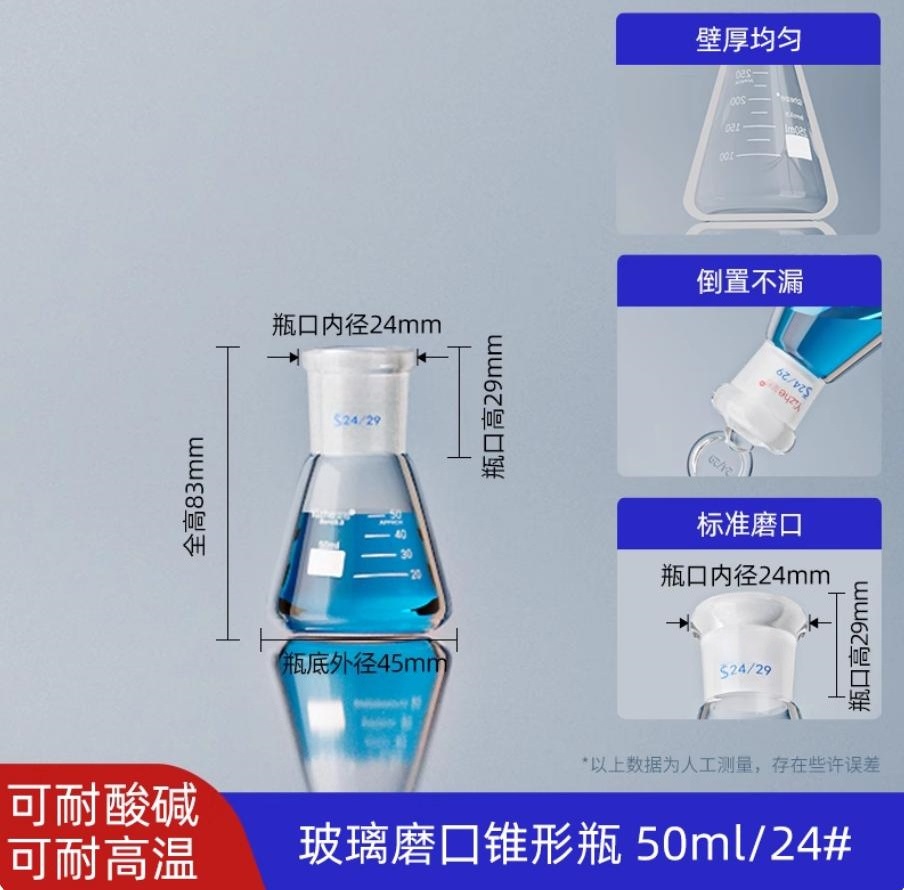 磨口三角瓶标准口磨口三角烧瓶(磨口锥形瓶)50ml*24#