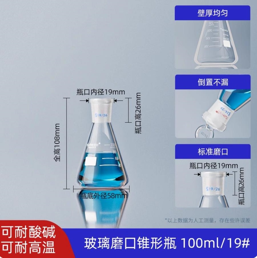 标准口磨口三角烧瓶(磨口锥形瓶)100ml*19#