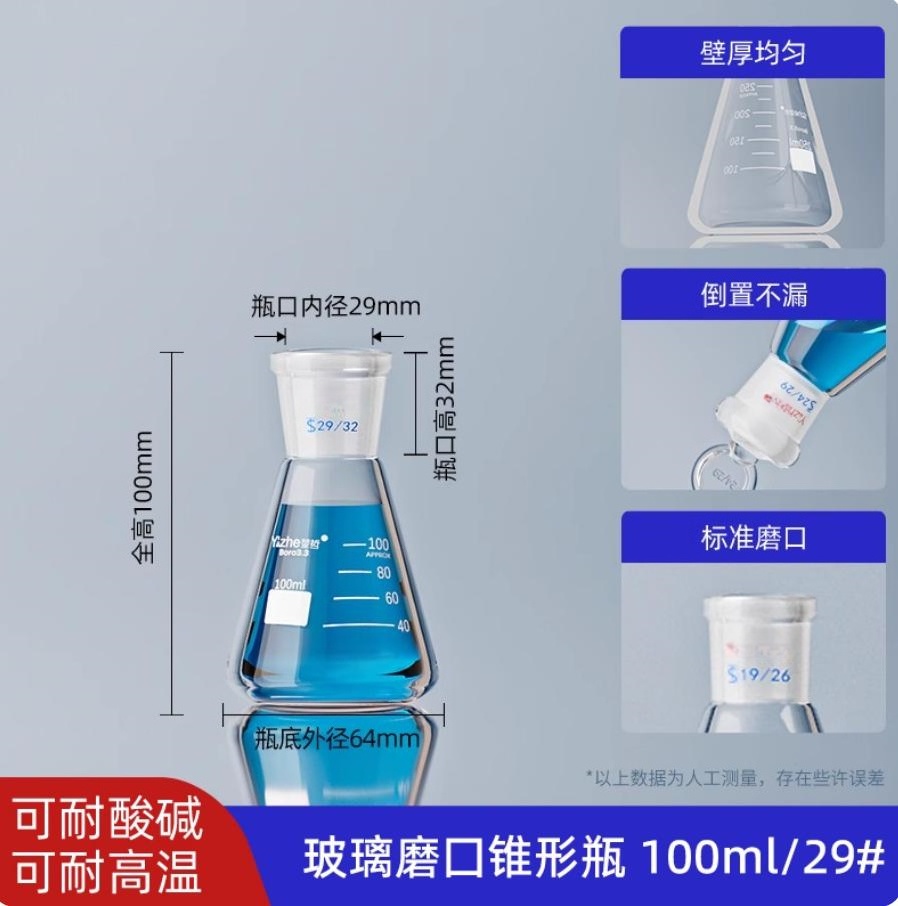 磨口三角瓶标准口磨口三角烧瓶(磨口锥形瓶)100ml*29#