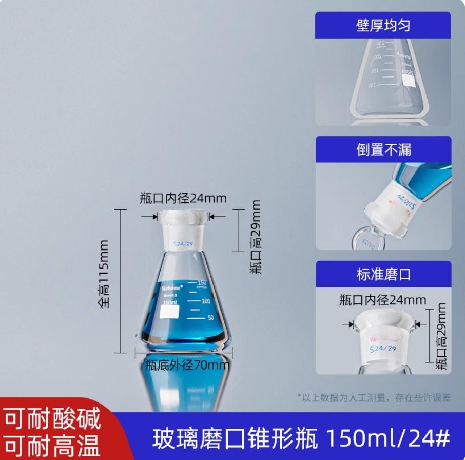 磨口三角瓶标准口磨口三角烧瓶(磨口锥形瓶)150ml*24#