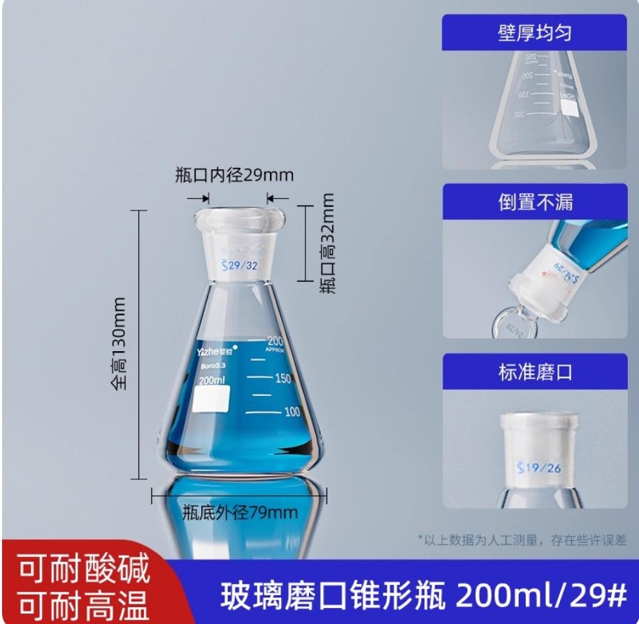 标准口磨口三角烧瓶(磨口锥形瓶)200ml*29#