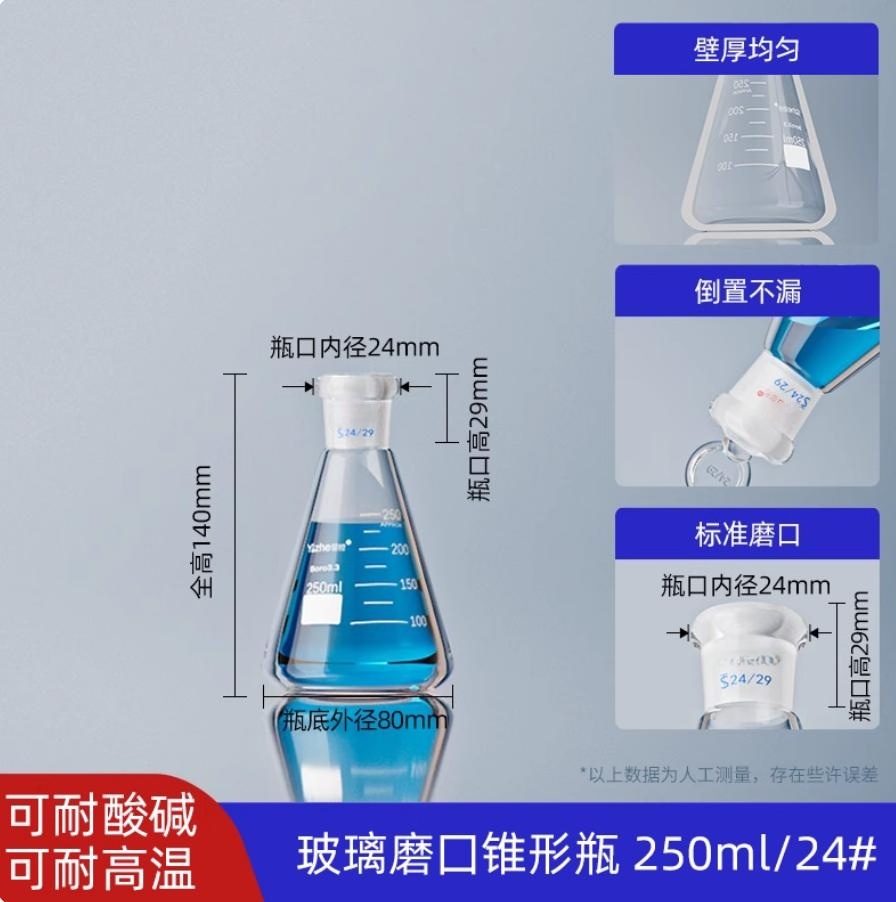 标准口磨口三角烧瓶(磨口锥形瓶)250ml*24#
