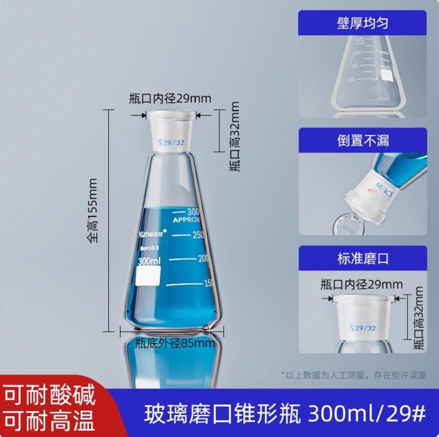 标准口磨口三角烧瓶(磨口锥形瓶)300ml*29#