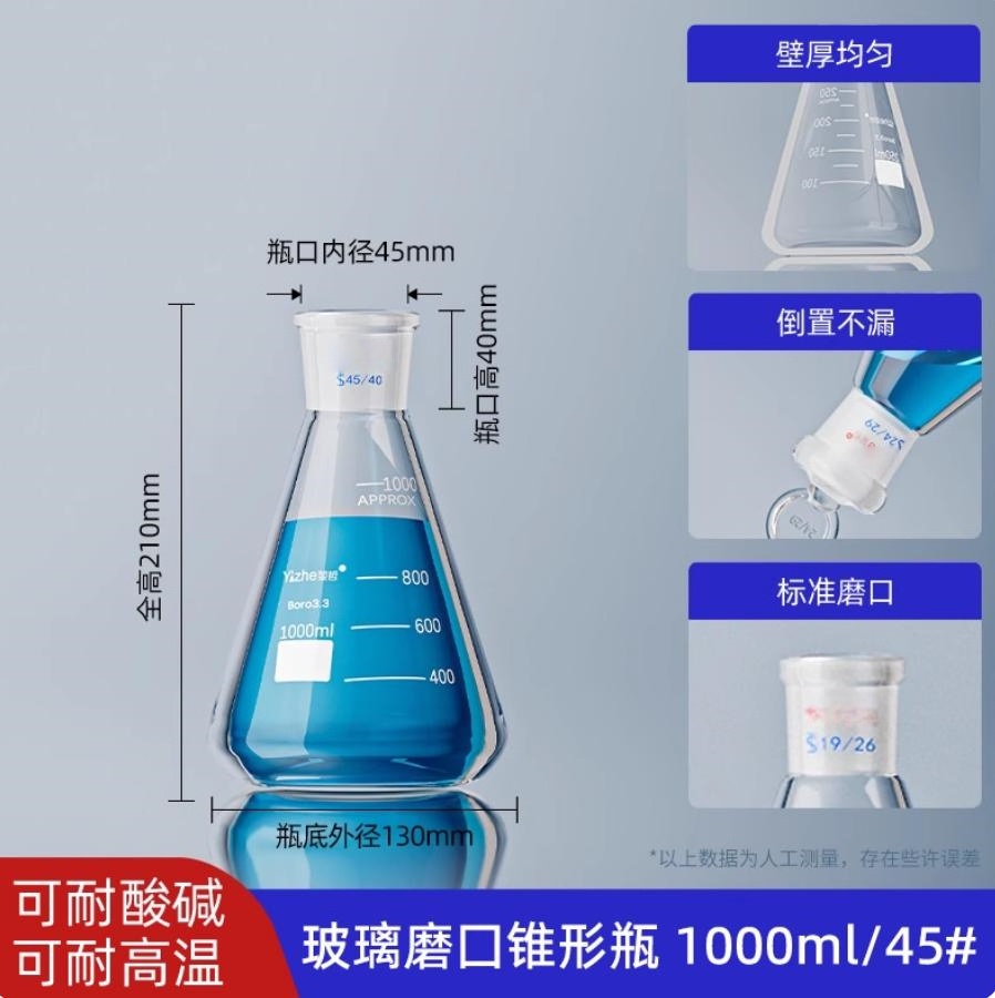 标准口磨口三角烧瓶(磨口锥形瓶)1000ml*45#