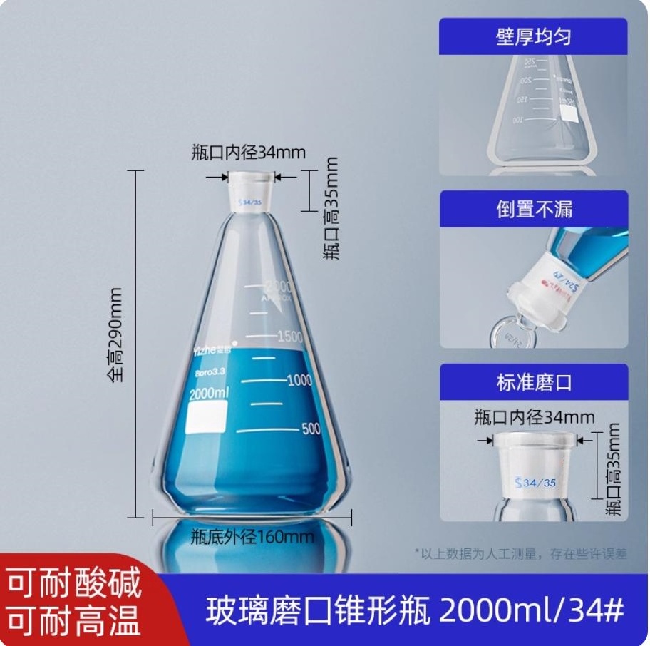磨口三角瓶标准口磨口三角烧瓶(磨口锥形瓶)2000ml*34#