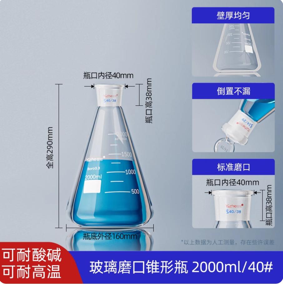 磨口三角瓶标准口磨口三角烧瓶(磨口锥形瓶)2000ml*40#