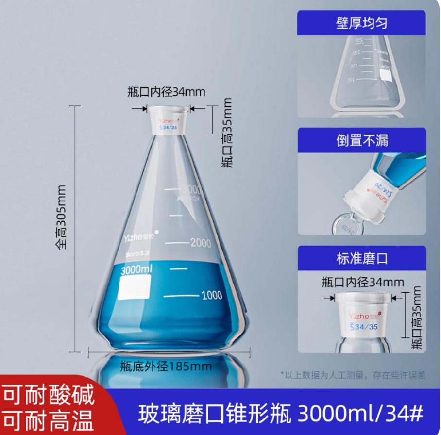 磨口三角瓶标准口磨口三角烧瓶(磨口锥形瓶)3000ml*34#