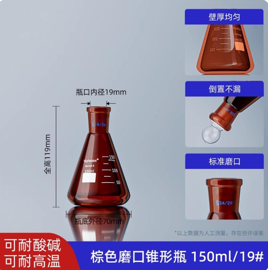 棕色磨口三角瓶棕标准口棕磨口三角烧瓶(棕磨口锥形瓶)150ml*19#