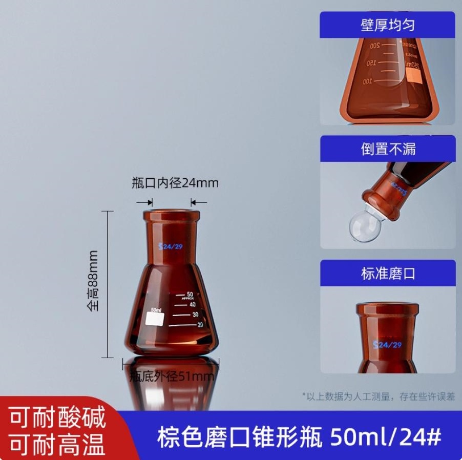 棕色磨口三角瓶棕标准口棕磨口三角烧瓶(棕磨口锥形瓶)50ml*24#