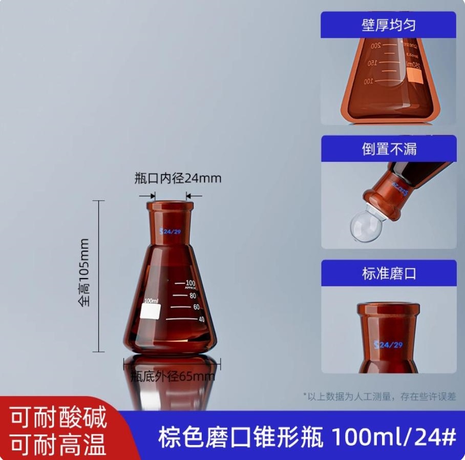 棕色磨口三角瓶棕标准口棕磨口三角烧瓶(棕磨口锥形瓶)100ml*24#