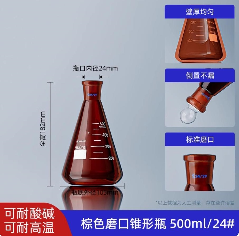 棕色磨口三角瓶棕标准口棕磨口三角烧瓶(棕磨口锥形瓶)500ml*24#