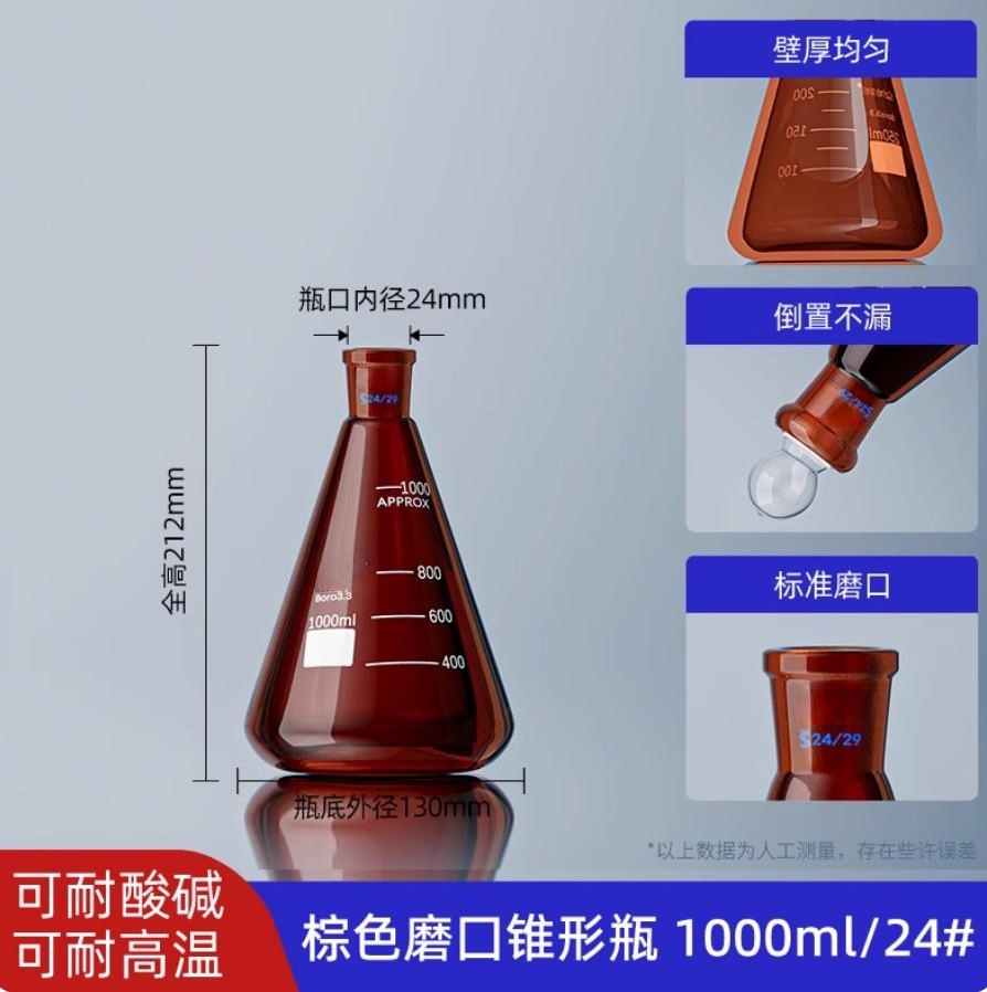 棕色磨口三角瓶棕标准口棕磨口三角烧瓶(棕磨口锥形瓶)1000ml*24#