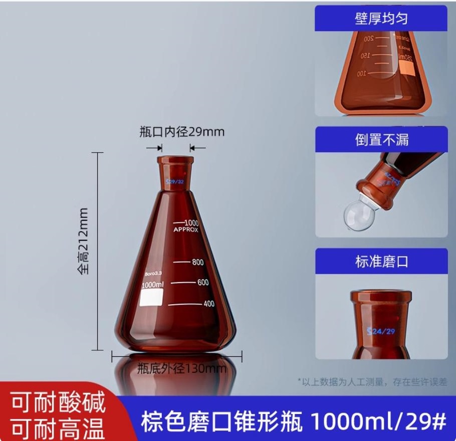 棕色磨口三角瓶棕标准口棕磨口三角烧瓶(棕磨口锥形瓶)1000ml*29#