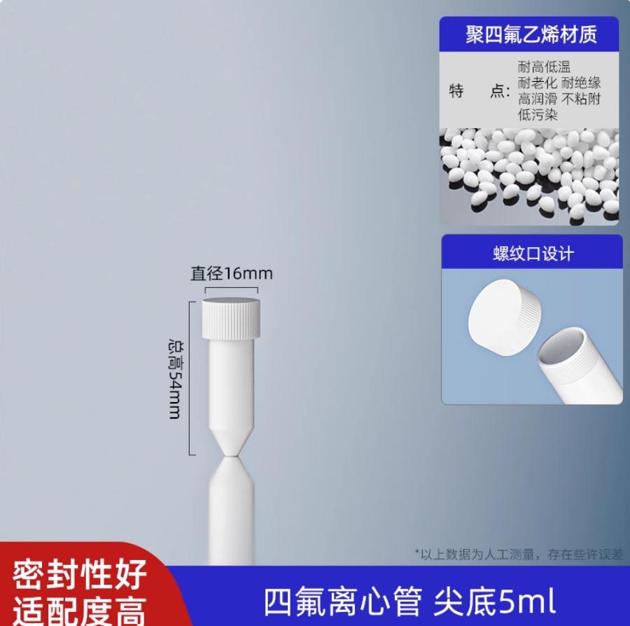 5ml尖底聚四氟乙烯离心管四氟试管四氟消解管PTFE螺口圆底耐高温离心管