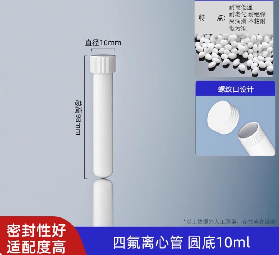 10ml圆底聚四氟乙烯离心管四氟试管四氟消解管PTFE螺口圆底耐高温离心管