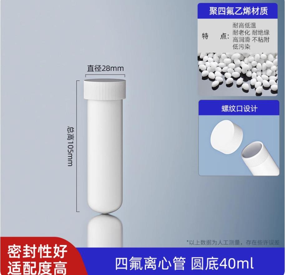 40ml圆底聚四氟乙烯离心管四氟试管四氟消解管PTFE螺口圆底耐高温离心管