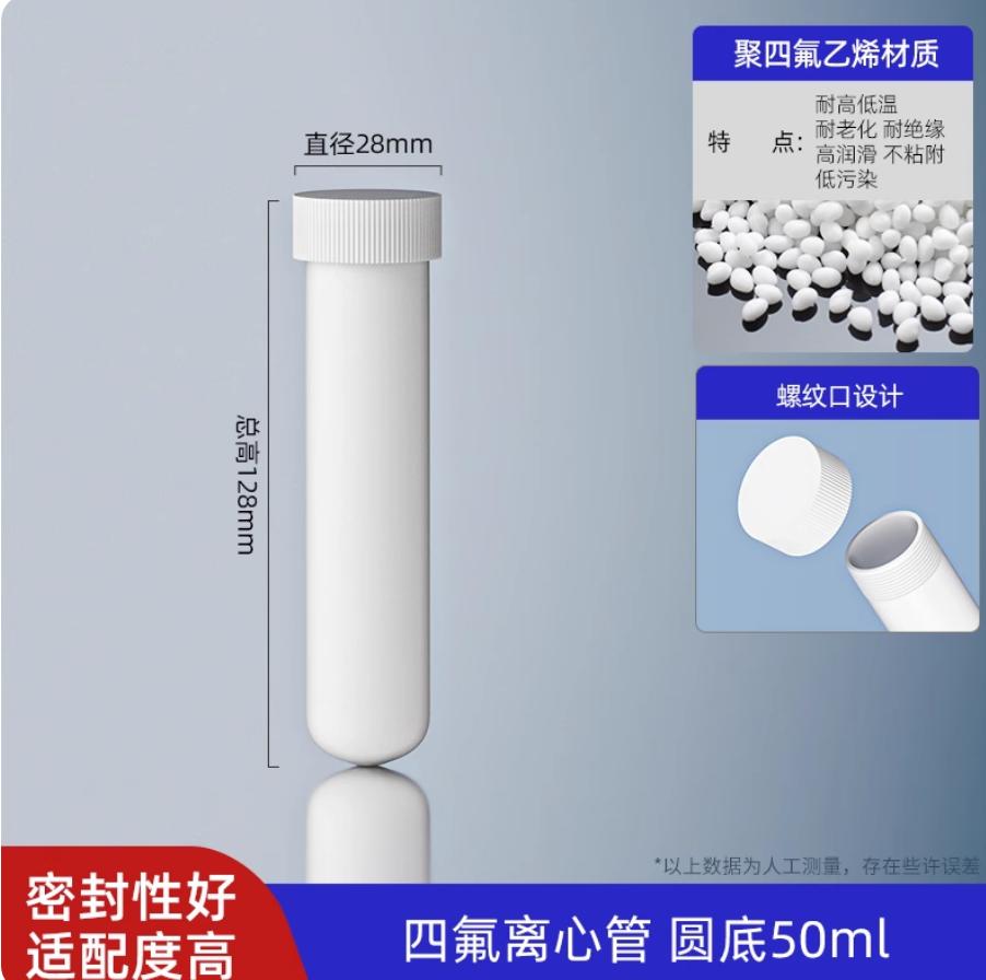 50ml圆底聚四氟乙烯离心管四氟试管四氟消解管PTFE螺口圆底耐高温离心管