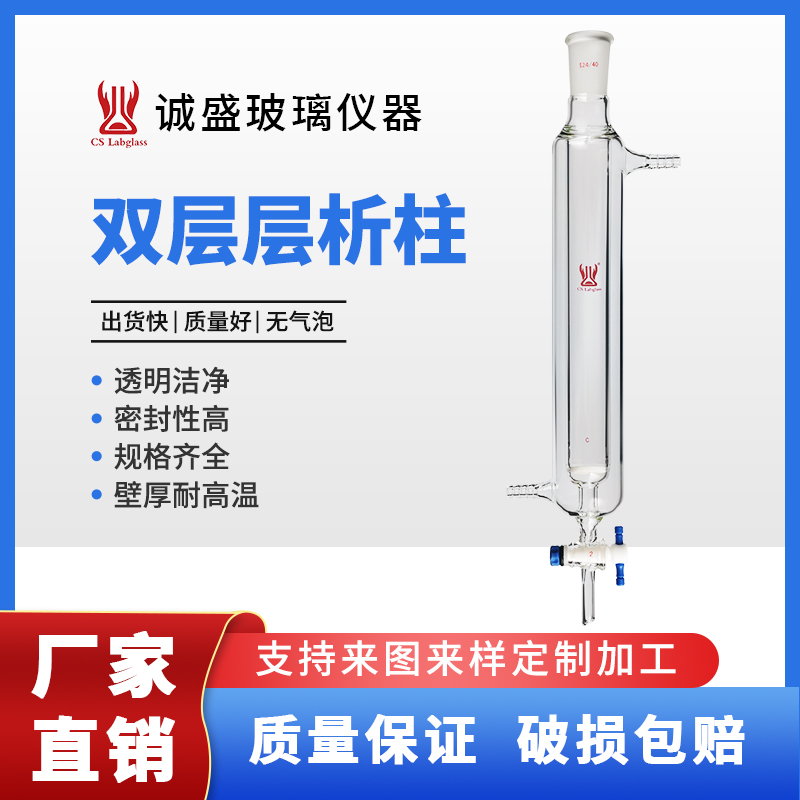 双层层析柱具砂芯夹套层析柱四氟活塞化学实验室玻璃仪器天津诚盛