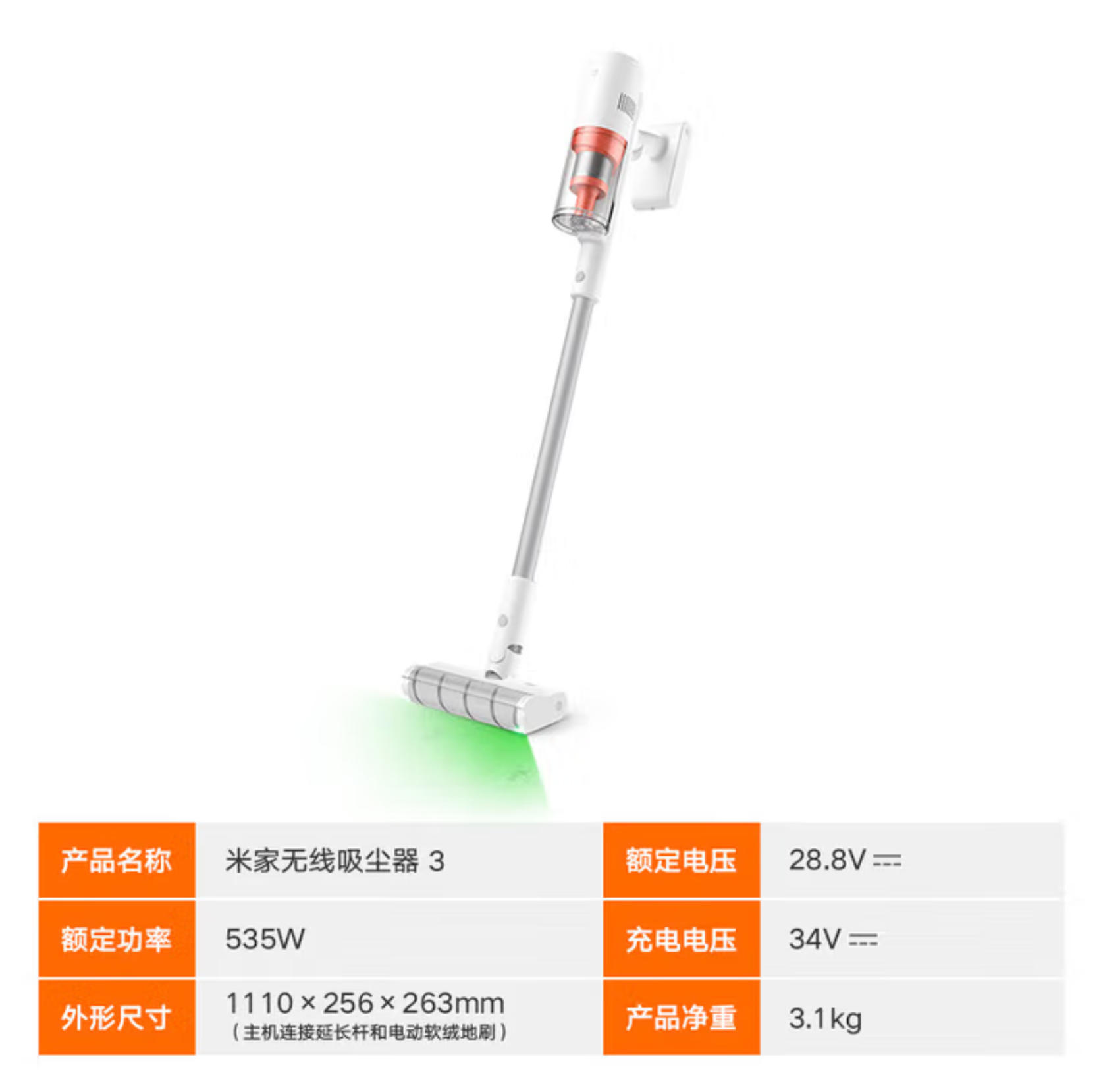 云栖漫心 米家 小米无线吸尘器3 除尘机 绿光 显尘 大吸力 长续航 低噪 防缠绕