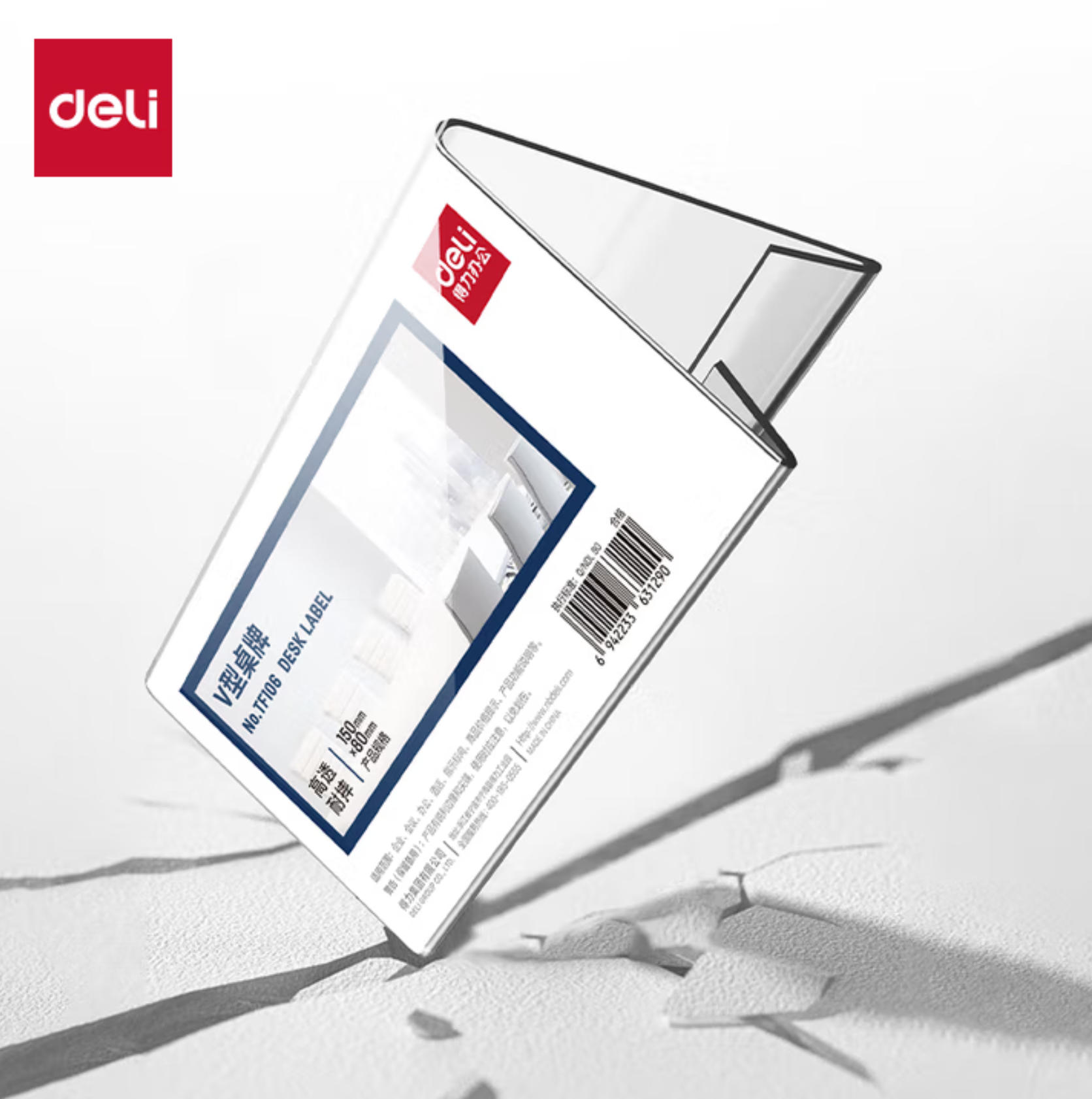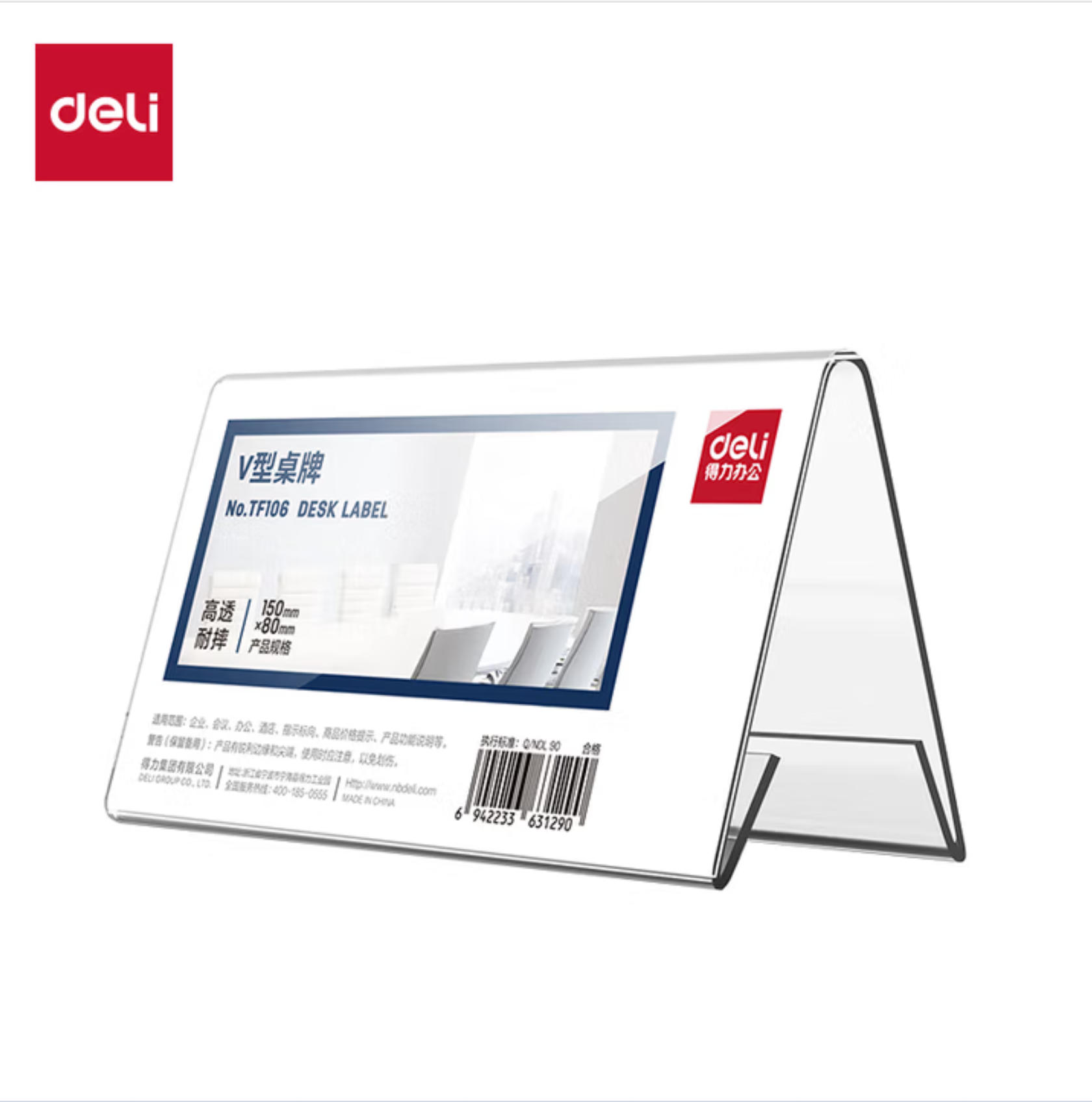 云栖漫心 得力 桌牌 亚克力 升级材质耐摔V型桌牌 会议牌席卡壳活动现场三角立牌/展示牌 会议座位牌TF106V [10个装]