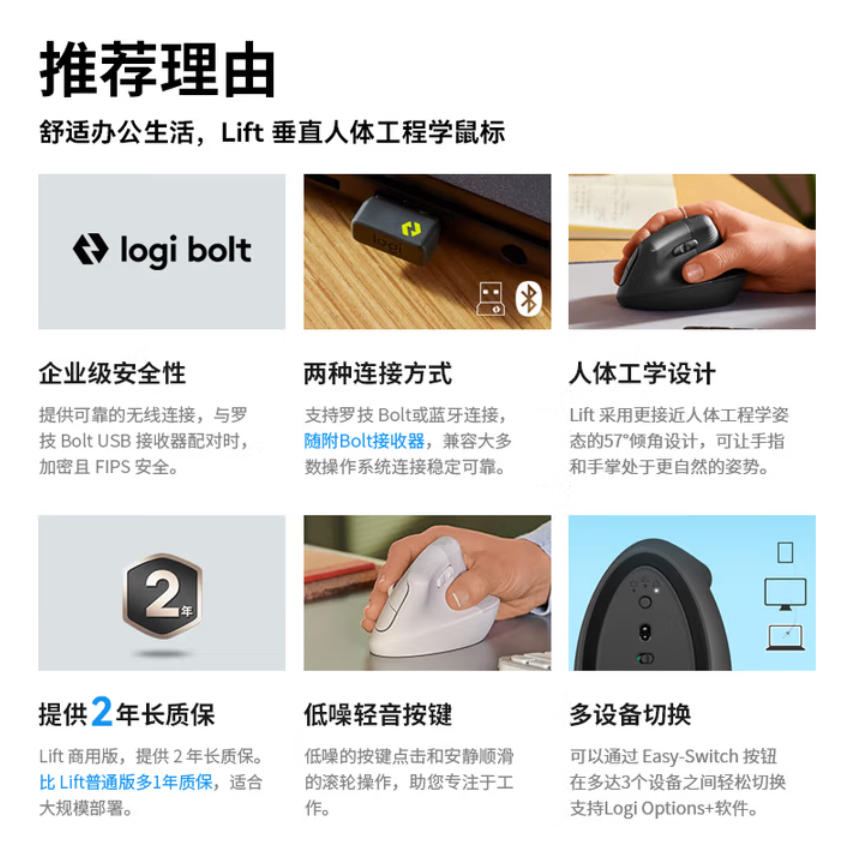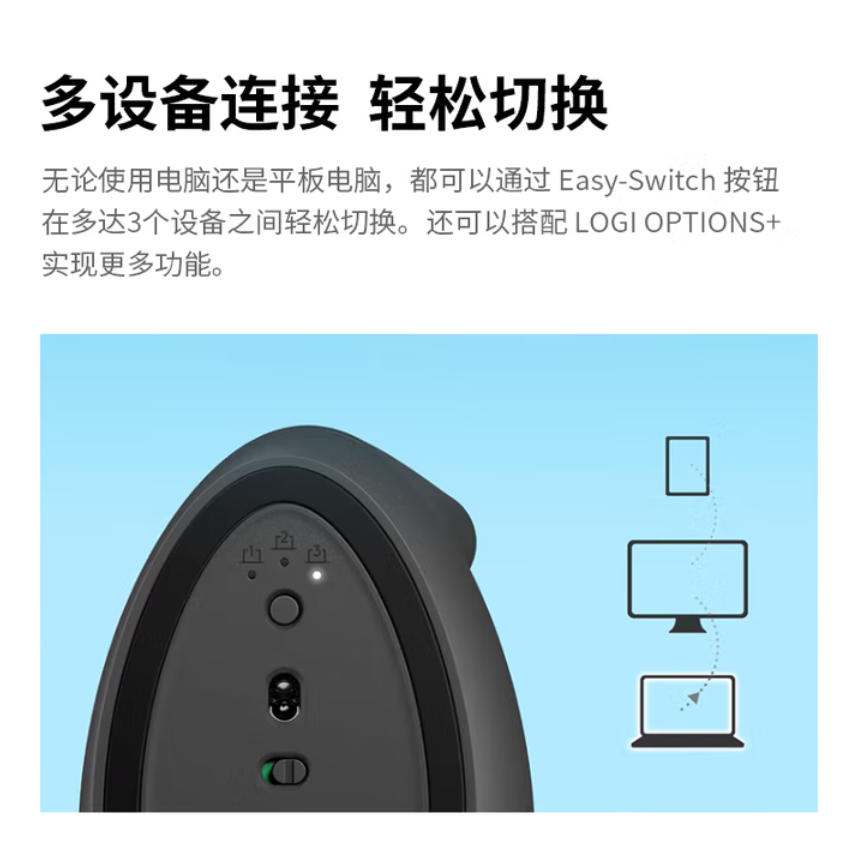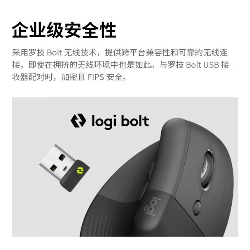 云栖漫心 罗技(Logitech)Lift人体工学蓝牙鼠标 无线静音垂直办公鼠标 带Logi Bolt接收器 灰色