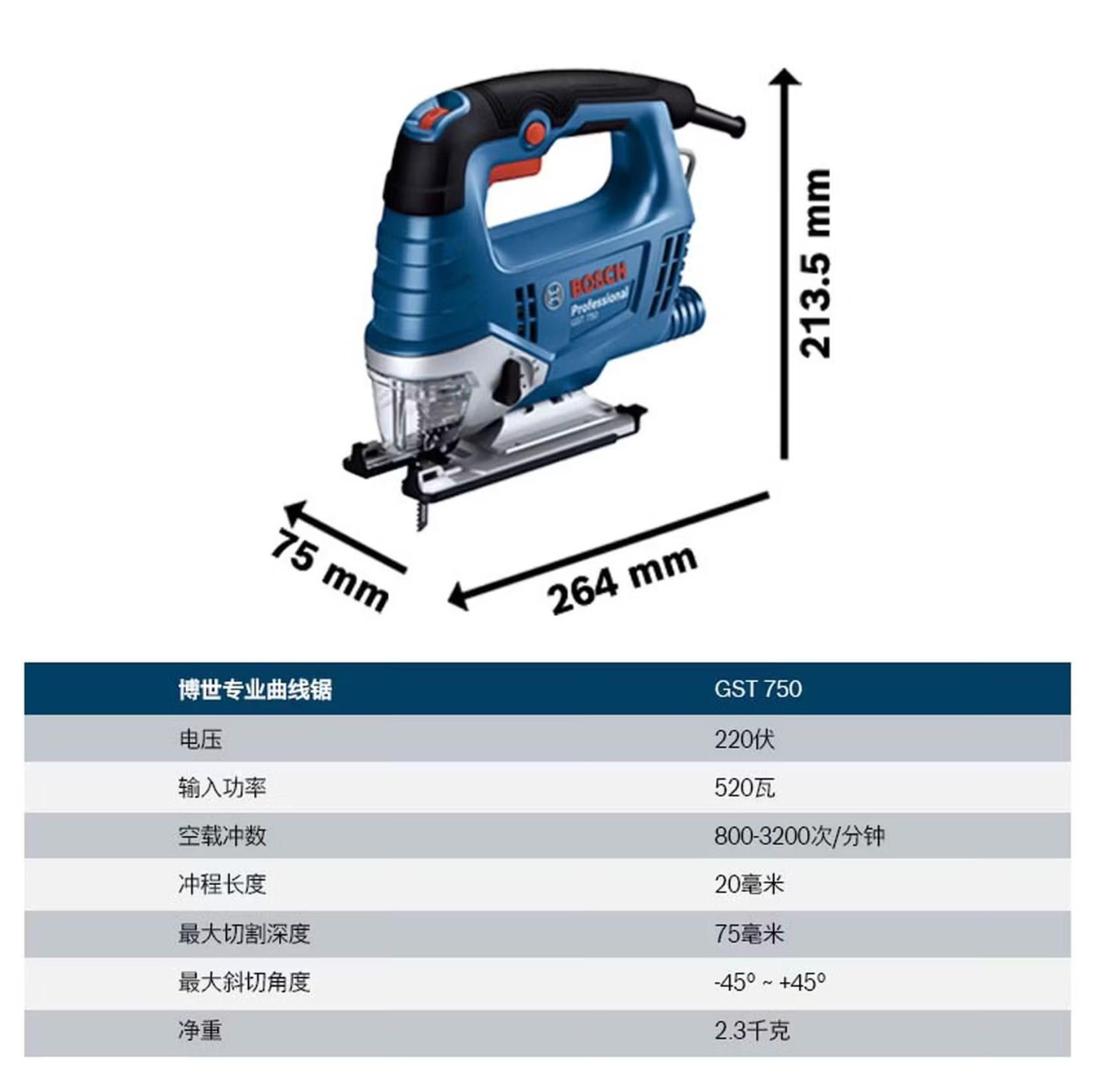 博世(BOSCH)曲线锯木材切割无级变速520瓦插电式 GST 750