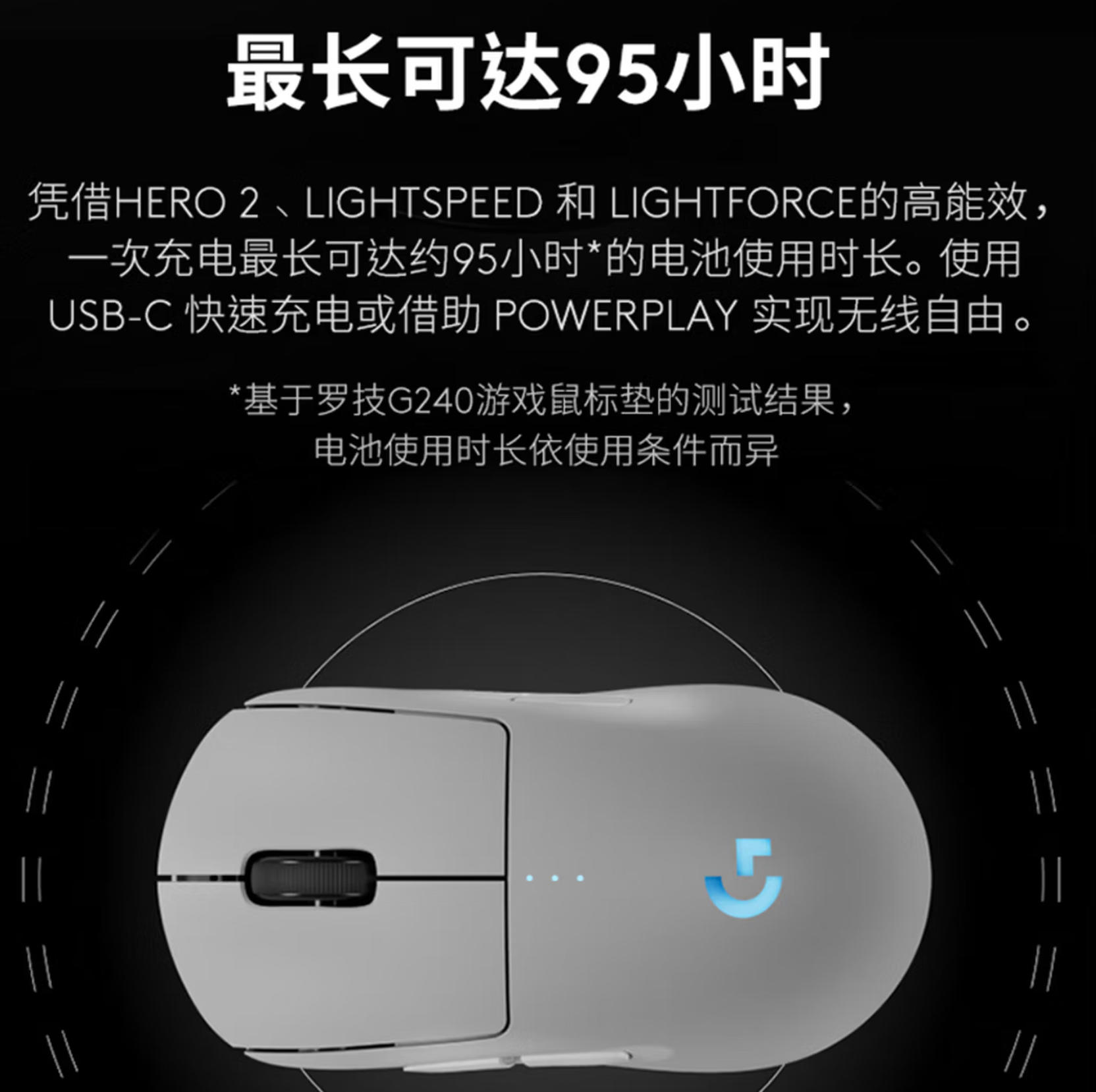 罗技 GPW四代 无线游戏鼠标 HERO 2传感器 对称设计 电竞级无线技术 朱雀(黑色)