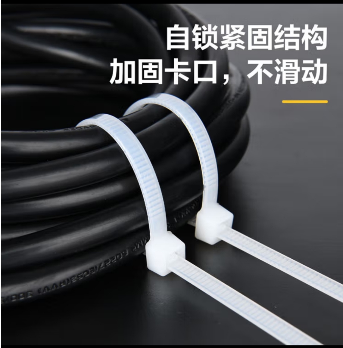 自锁式尼龙扎带阻燃理线带 捆扎带 束线扎线绑带 白色 200根/包