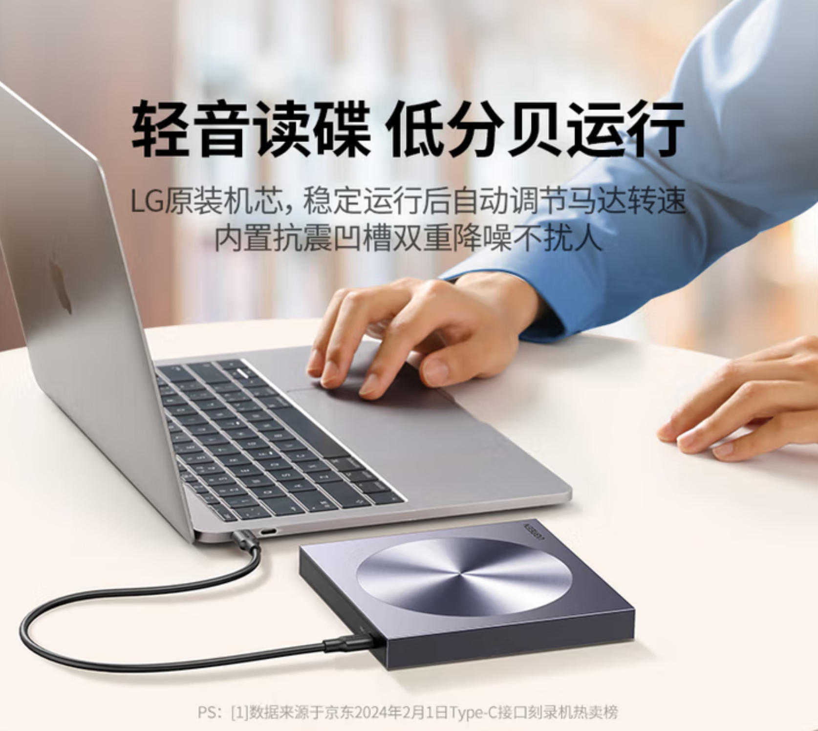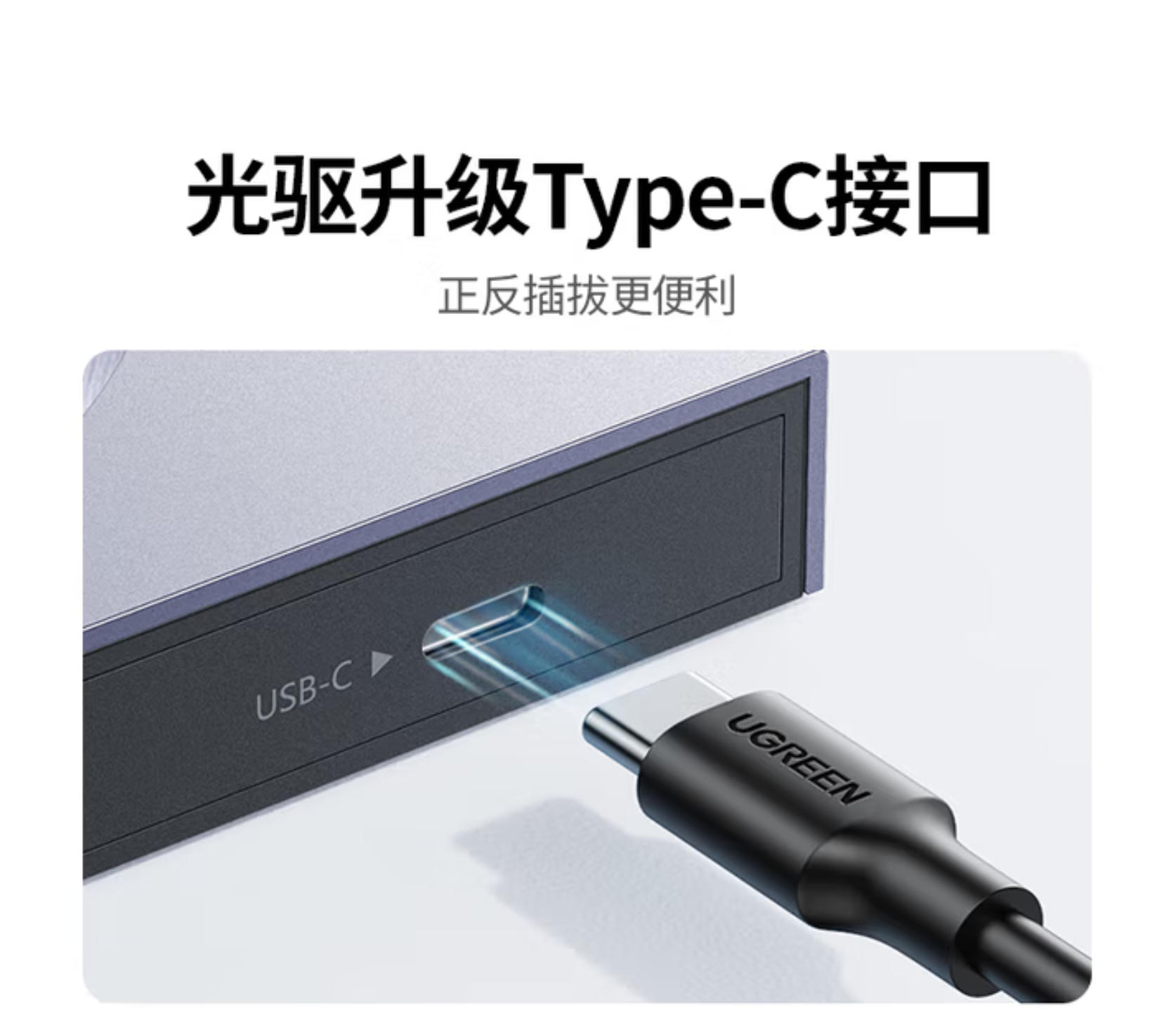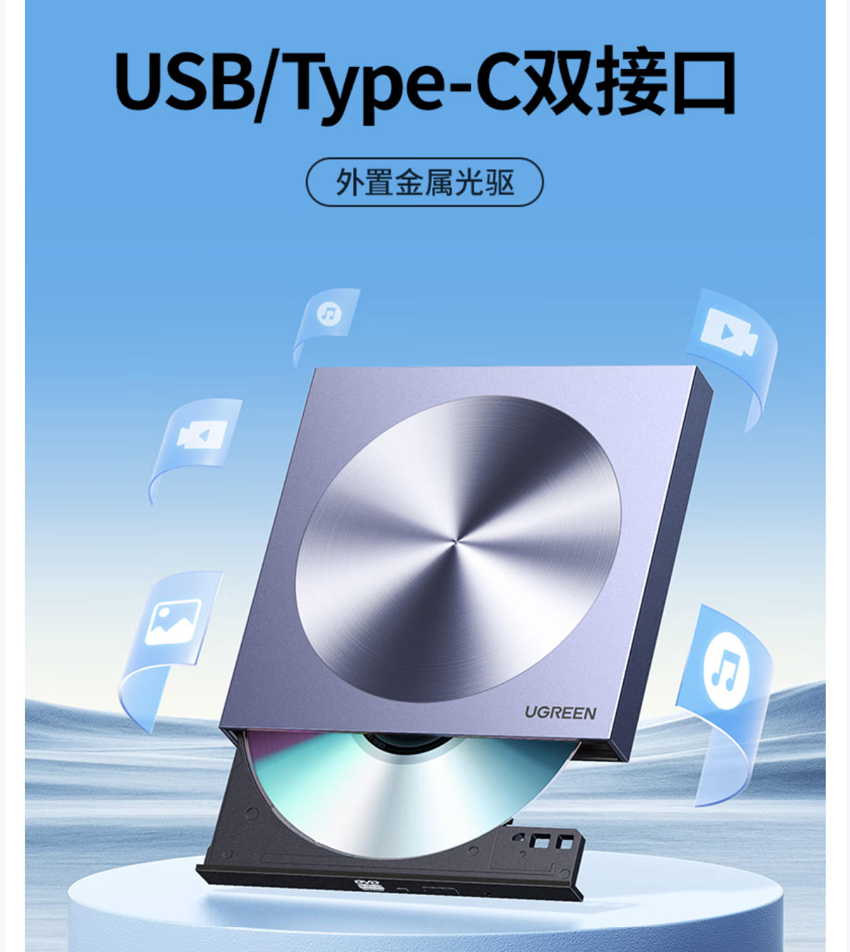 云栖漫心 绿联8倍速Type-C/USB外置光驱移动刻录机便携读刻一体 笔记本电脑外接DVD/CD光盘播放高速读取器80130