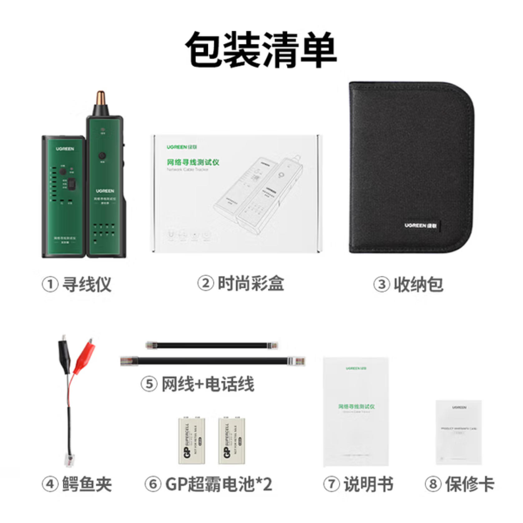 云栖漫心 绿联 网络寻线仪 多功能电话网线测线仪寻线器 测线查线仪查线器 60V耐压防烧巡线仪通断器套装 10951