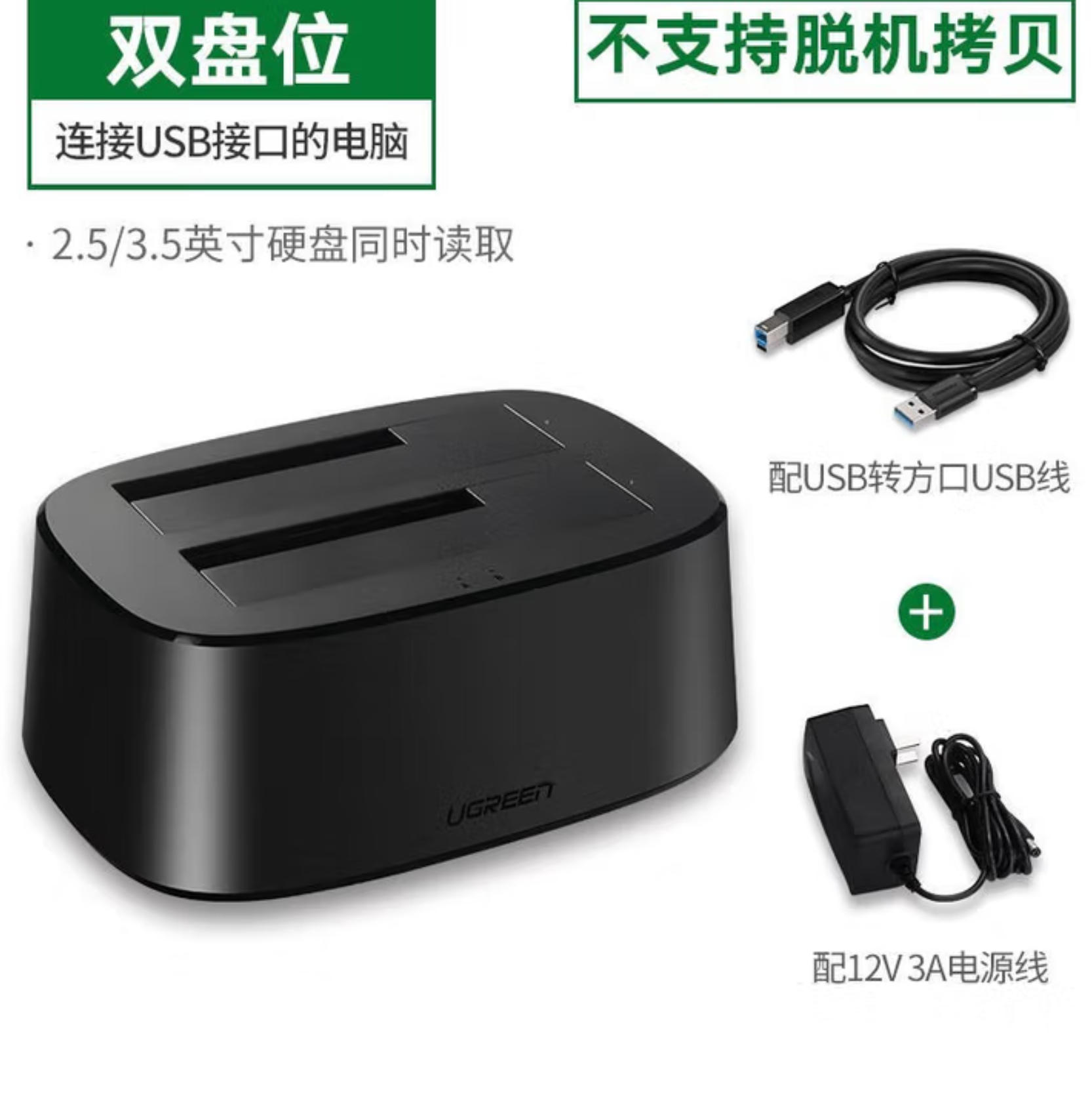 云栖漫心 绿联 移动硬盘盒底座2.5/3.5英寸USB3.0 SATA台式笔记本机械固态ssd外置硬盘盒子 USB3.0【双盘位-扩容48T】70442