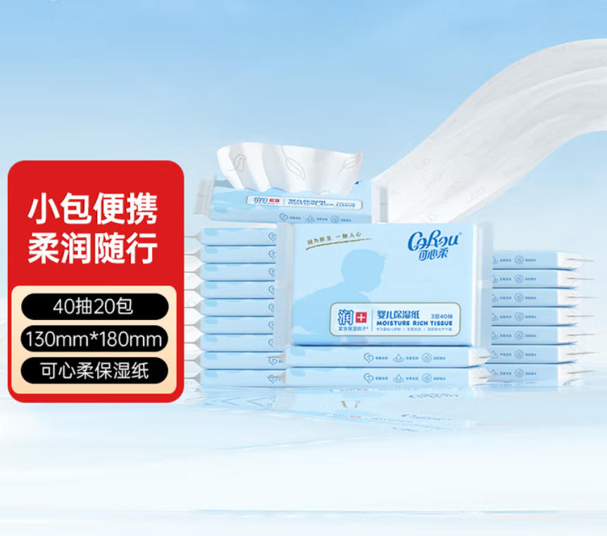 云栖漫心 可心柔(COROU) 纸巾 抽纸 云柔巾 乳霜纸 3层40抽20包 便携装 纸巾 小包抽纸